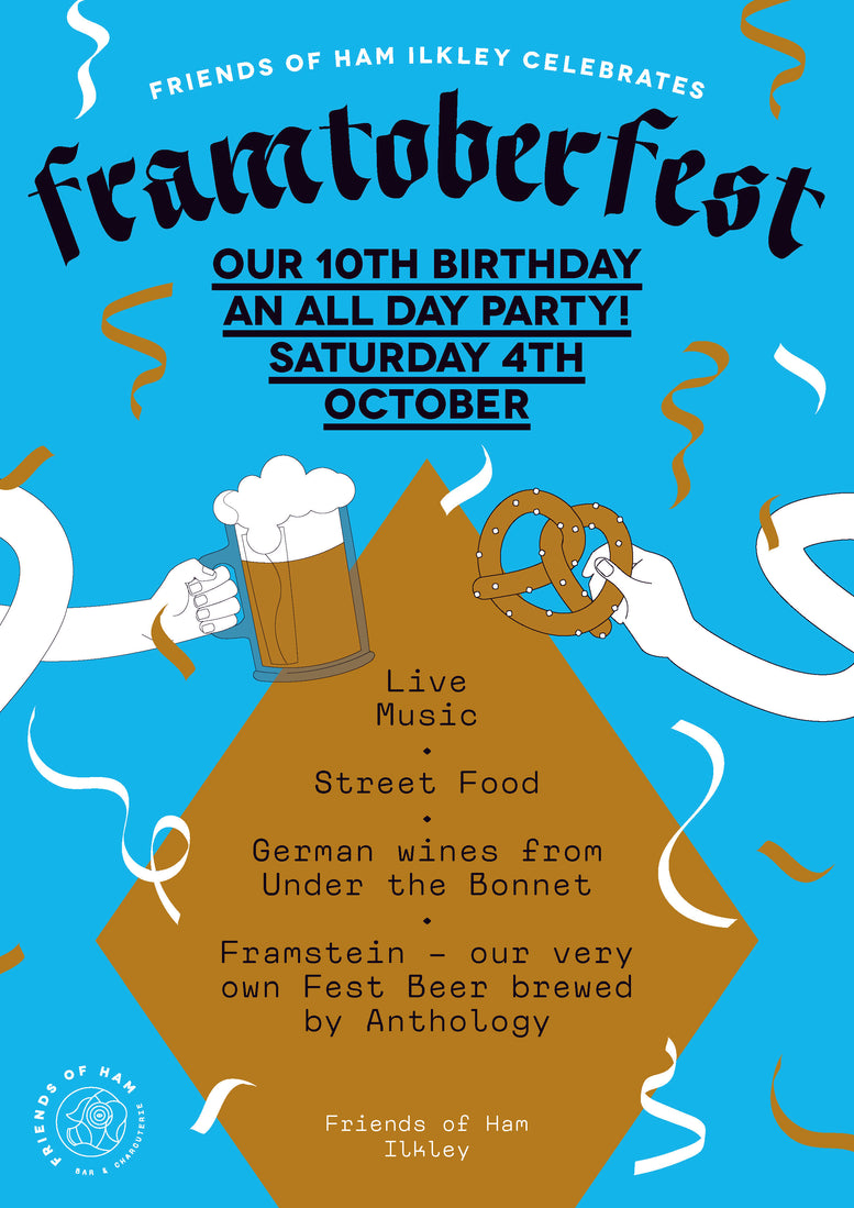 To celebrate Ilkley's 10th birthday we're holding a German-themed party on Saturday 4th October. We will also be launching our brand new German-inspired lager brewed with our buddy Liam at Anthology - introducing Framstein!